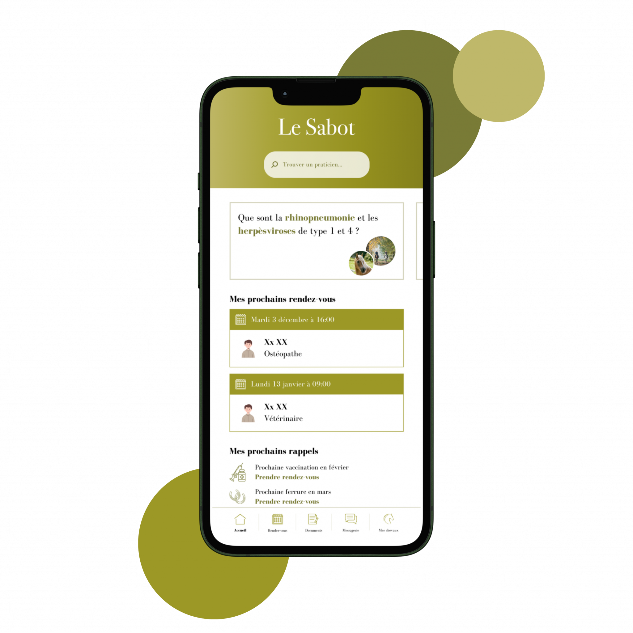 Notre application simplifie le suivi médical de votre cheval en centralisant toutes les informations essentielles : vaccinations, soins, traitements et rendez-vous. Vous pouvez facilement consulter son historique, planifier des rendez-vous avec des praticiens, et recevoir des rappels. L’application permet aussi de partager les données de santé avec les vétérinaires, maréchaux-ferrants, dentistes, ostéopathes et autres professionnels pour garantir un suivi optimal et personnalisé.